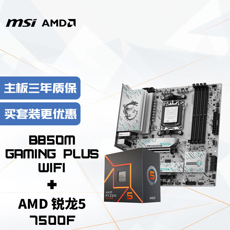 【京东商城】【电脑办公】微星(MSI)主板CPU套装B850M GAMING PLUS WIFI+AMD锐龙5 7500F 板U套装