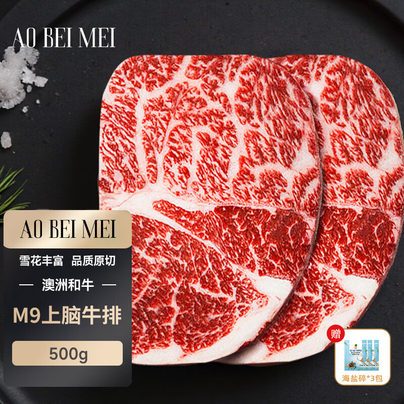 【京东商城】【食品保健】澳贝美谷饲原切M9和牛上脑牛排1斤 生鲜食材源头直发