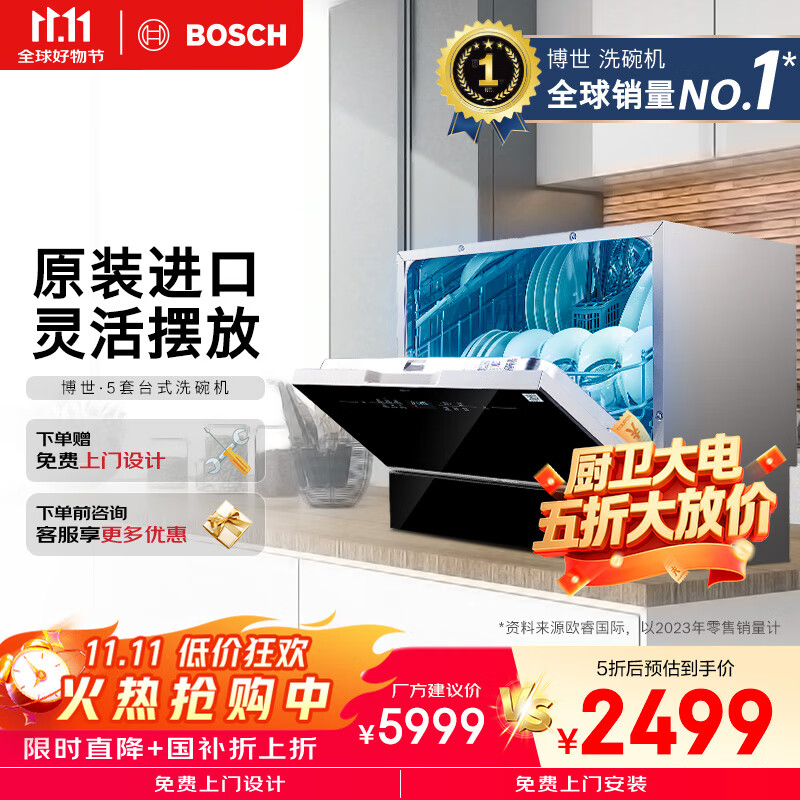 【京东商城】【生活家电】博世(BOSCH)5套家用洗碗机台式嵌入式 高温除菌LED触控显示