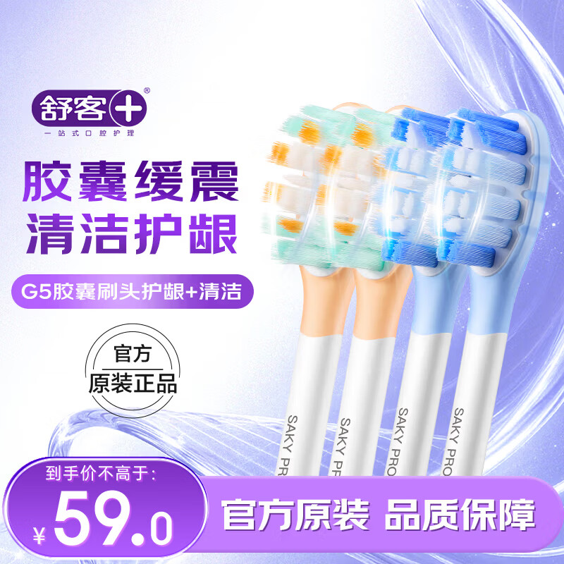 【京东商城】【电脑办公】舒客 声波电动牙刷头G5Pro+系列替换刷头4支 胶囊缓震 护龈刷
