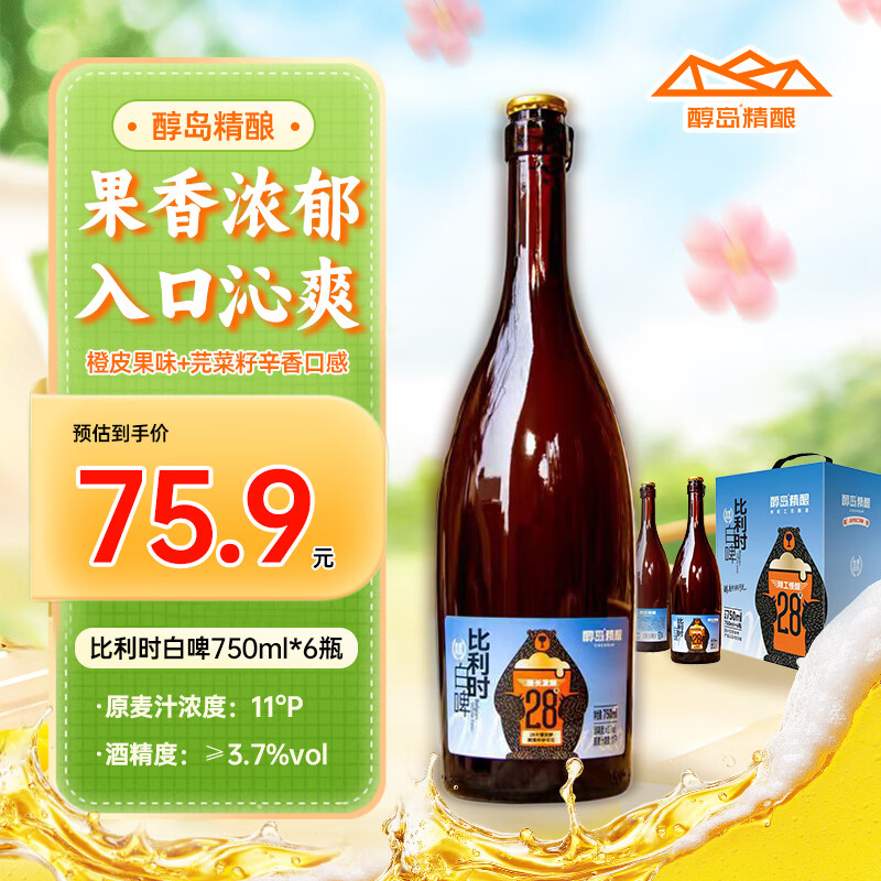【京东商城】【食品保健】醇岛精酿比利时白啤750ml* 6瓶/箱 (慢酿28天 精酿醇厚 过节日