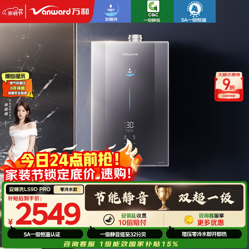 【京东商城】【生活家电】万和安睡洗16升天然气增压双循环控温国家补贴15% LS9D PRO燃气