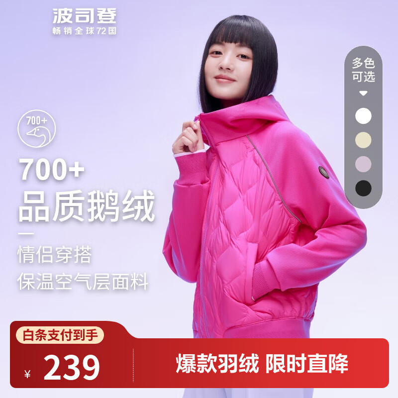 波司登(BOSIDENG)奥莱专供秋冬羽绒服春秋短款鹅绒情侣款简约休闲轻薄外套 芭比粉1674 S 160/84A