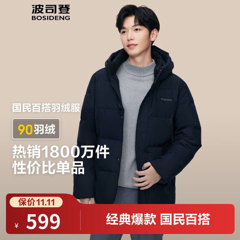 波司登(BOSIDENG)【断码清仓】羽绒服新国标90绒男短款新升级版型高包容保暖外套 黑黛青5177 M 175/96A