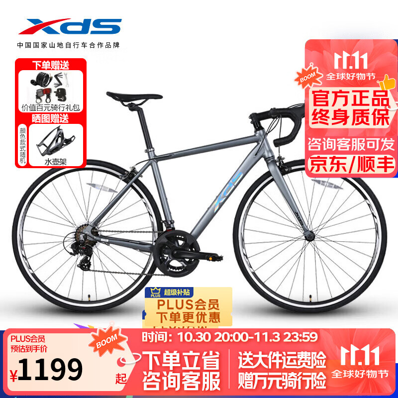 喜德盛(xds)公路自行车RC200入门休闲14速变速铝合金车架公路车 深灰镭射银(标准版) 480mm