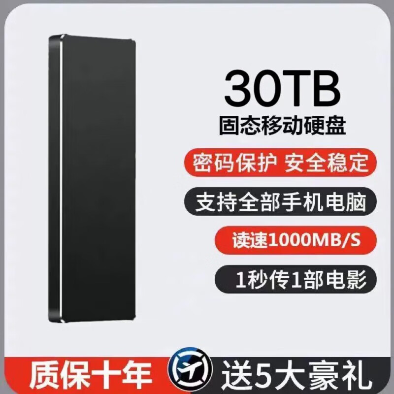 西数大容智选电脑手机通用移动硬盘固态储存4t 2t 1t 8t大容量平板通用ssd移动u盘外置加密 30TB高速-星耀黑手机电脑通