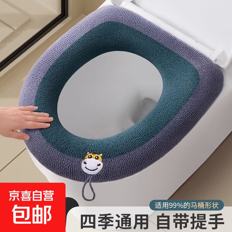 马桶坐垫通用通用型冬季加厚方形家用坐便器垫子垫座网红四季提手 灰绿牛牛提手【1条装】加厚 四季通用(加厚马桶圈)质量-保证