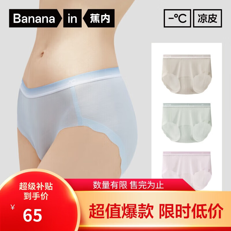 蕉内凉皮5系女士内裤无痕中腰透气棉裆7A抗菌冰丝薄款吸湿排汗三角3件