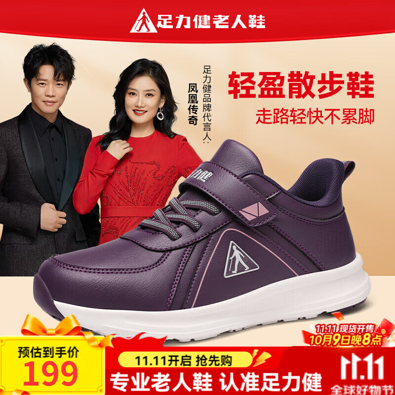 足力健防滑老人鞋春季妈妈鞋安全鞋户外散步休闲运动鞋中老年鞋子