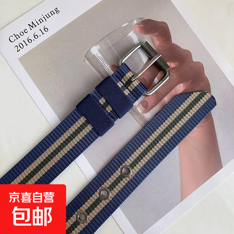 帆布腰带女装饰编织弹力高级感免打孔学生军训松紧收腰牛仔裤皮带 深蓝色