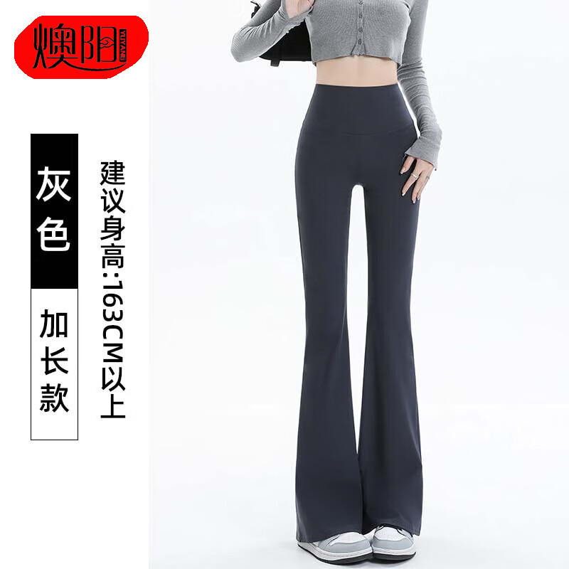 燠阳微喇裤鲨鱼裤女春秋高腰显瘦修身马蹄阔腿裤女外穿紧身喇叭裤打底 灰色净版-加长款(建议163cm以上) L (适合100~120斤)