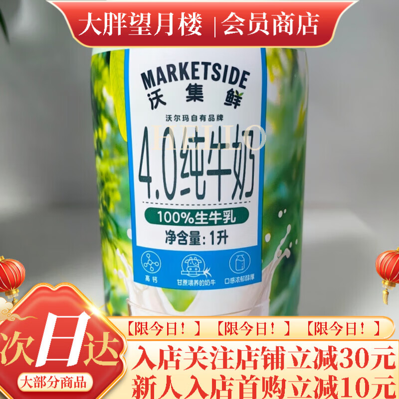 沃集鲜沃尔玛纯牛奶沃集鲜生牛乳小绿瓶小紫瓶甘蔗喂养 绿瓶:4.0纯牛奶一瓶