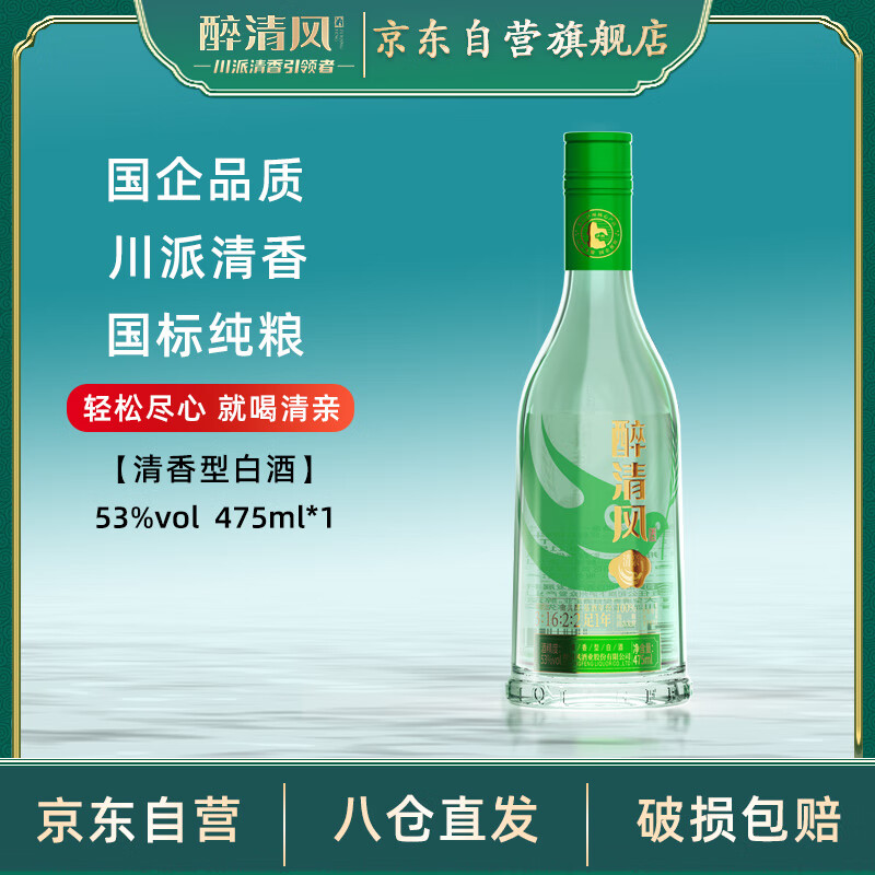 醉清风清亲清香型白酒475ml单瓶装光瓶自饮高度口粮酒