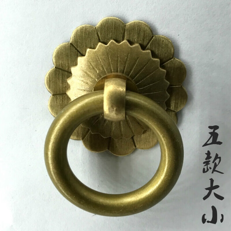 CLCEY中式仿古铜拉环家具柜门圆环扣手简约铜环抽屉柜拉手小把手 2.5cm黄铜色u型针固定款