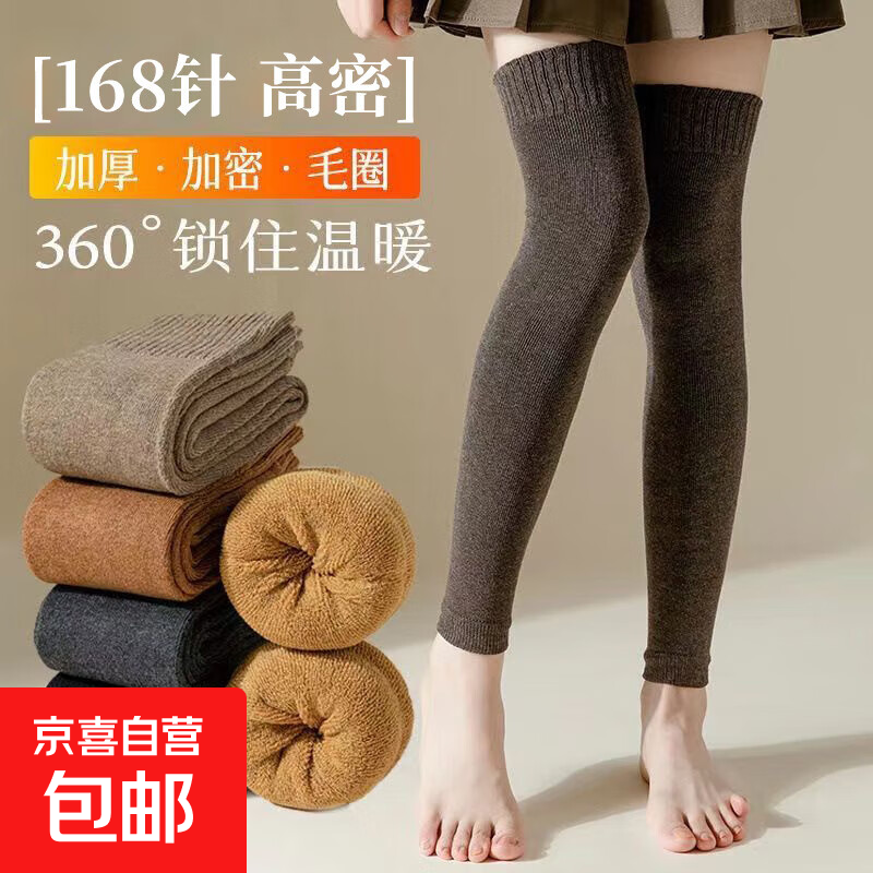 秋冬款加厚保暖关节护膝袜套女高筒袜子外穿瘦腿时尚毛圈长袜膝盖 2双装毛圈袜套【黑色+深灰】 均码 /168针加密