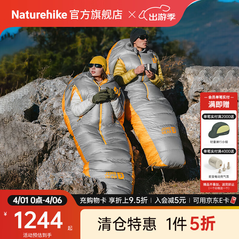 Naturehike挪客JV系列伸手羽绒睡袋 户外露营超轻保暖秋冬加厚极寒登山徒步 JV700/M/适宜温度-6.2~-13.2°C