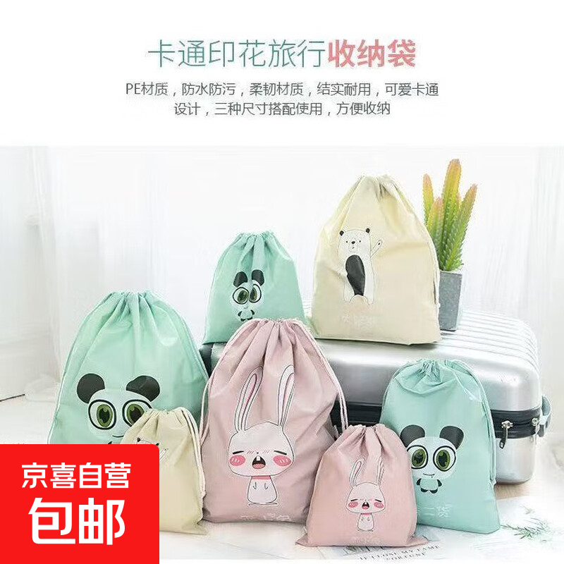 卡通抽绳束口袋旅行收纳袋 中号随机一个(27*32cm)