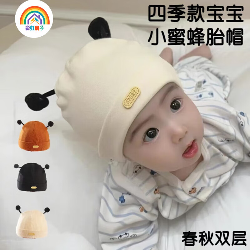 彩虹房子春秋男女宝宝儿童帽胎帽合集 小蜜蜂胎帽-白色棉-参考0-6个月(36-42cm) 四季双层