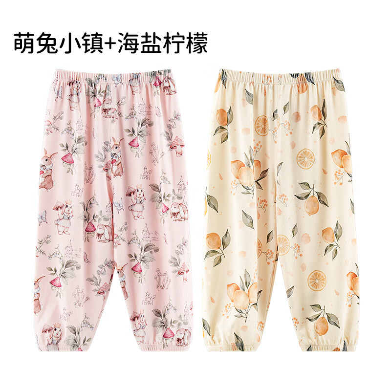 欧孕(OUYUN)儿童防蚊裤夏季薄款宝宝裤子男童女童抖抖裤婴儿童装休闲长裤 萌兔小镇+海盐柠檬 90 cm