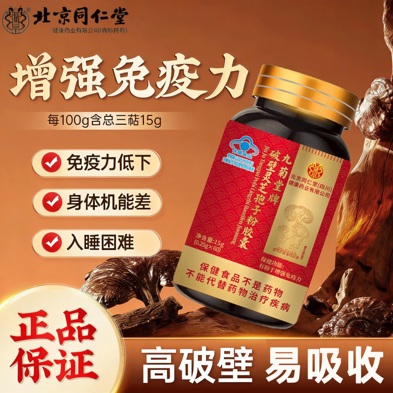 同仁堂(TRT)破壁灵芝孢子粉胶囊增强免疫力保健品营养品送礼老人滋补礼物 【1瓶装】灵芝袍子粉胶囊1