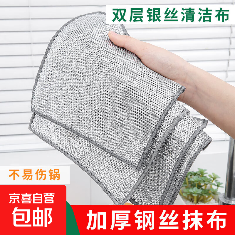 【新人立减价】厨房挂件洗碗布银丝布不沾油钢丝球抹布清洁布 钢丝抹布2条装 长20*20CM