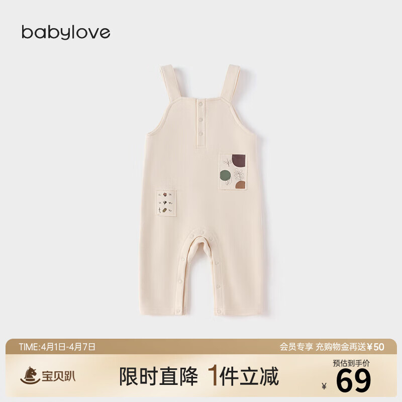 babylove【清仓】宝宝背带裤春秋休闲长裤婴儿连体裤贴布洋气外出百搭裤子 米穗色 110