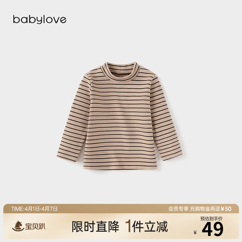 babylove【清仓】婴幼儿保暖t恤春秋季长袖条纹打底衫男女宝宝外出百搭 卡其色 110