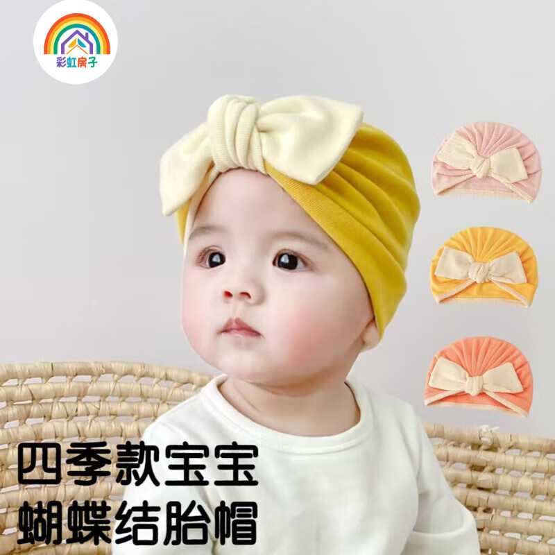 彩虹房子春秋男女宝宝儿童帽胎帽合集 蝴蝶结米黄胎帽参考1-12个月