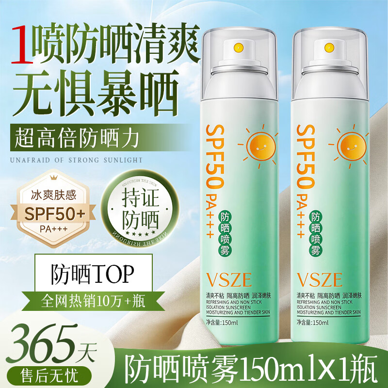 VSZE防晒喷雾霜男女士军训专用高倍美白防水防汗持久防紫外线SPF50+ 【青色新升级】军训高倍防晒喷雾150ml*2瓶