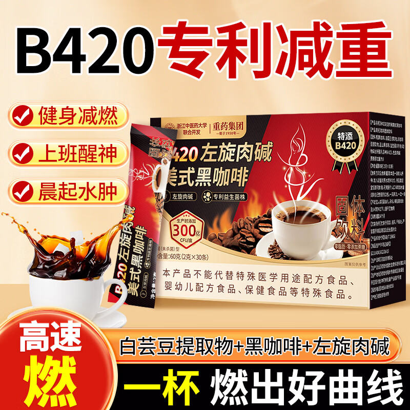 信盛堂B420左旋肉碱美式黑咖啡60g冲饮0糖0脂减燃提高新陈代健身常备