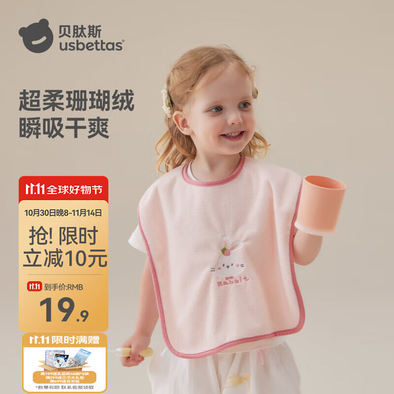 贝肽斯儿童洗漱巾刷牙防水围兜漱口巾不湿衣多功能毛巾宝宝洗脸巾 利维亚象-单面 抗菌升级