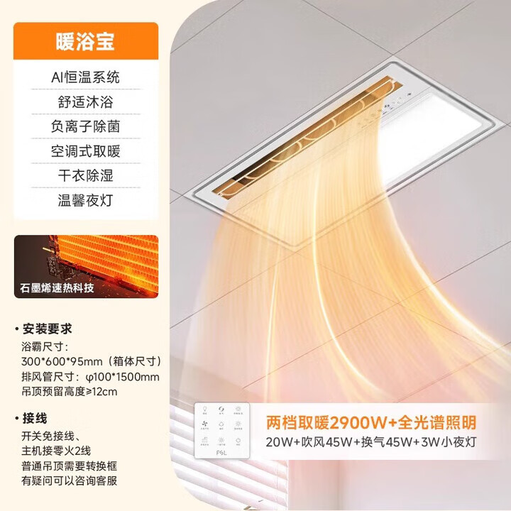小米锅巴智能照明暖风机浴霸灯取暖排气扇照明一体集成吊顶浴室化妆室暖风 [暖浴宝][匠心新款]石墨烯速热 恒温取暖+智能温控+温馨夜灯+加负离子