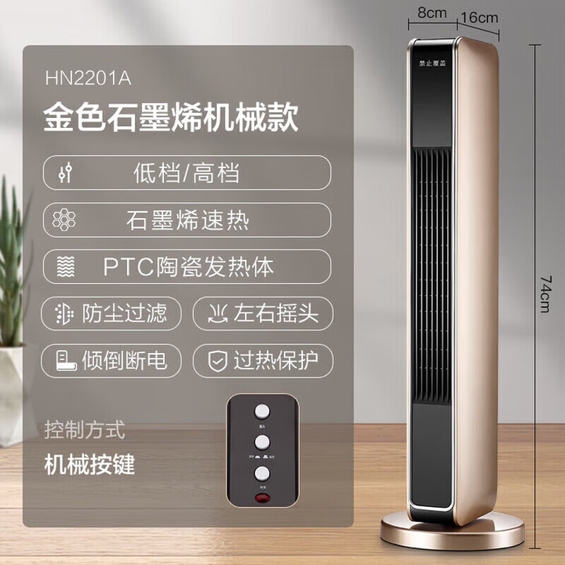 小米锅巴智能暖风机全屋取暖器家用卧室神器电暖器立式电暖器浴室热风 金色机械石墨烯双档调节 防尘过滤+左右摇头+倾倒断电+过热保护