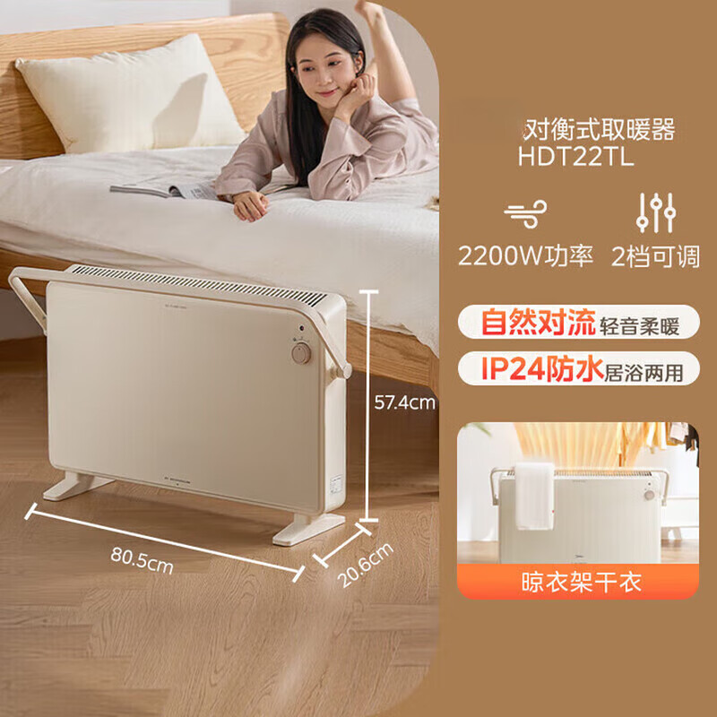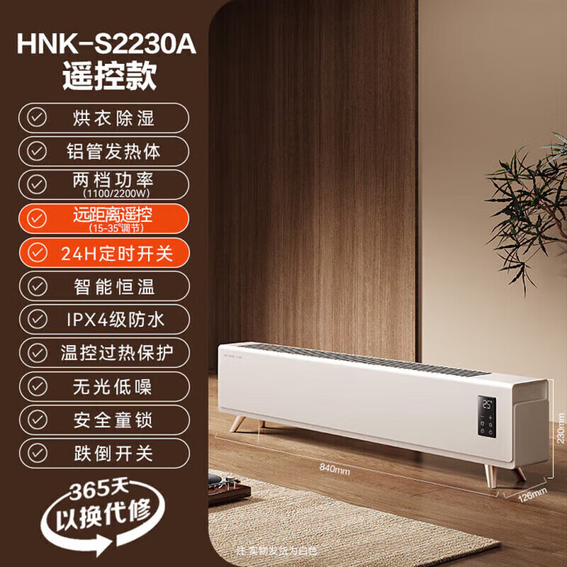 小米锅巴智能石墨烯踢脚板取暖器家用烘衣架神器电暖器节能省电电热器干衣婴儿浴室防水移动地暖油汀暖风机 米白色 烘衣除湿+智能恒温+安全童锁