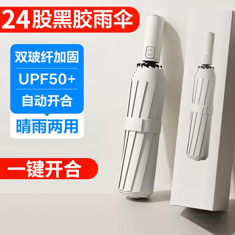 印象城24骨全自动折叠晴雨两用雨伞防晒遮阳伞防紫外线太阳伞双人大号 米色24骨(加固双人推荐)