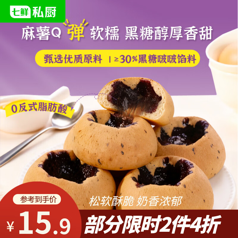 七鲜私厨黑糖啵啵麻薯半成品270g9粒装早餐面包甜品休闲零食甜点速食