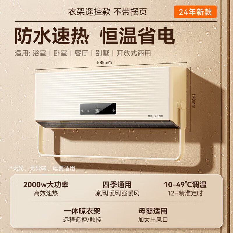 小米锅巴智能取暖神器浴室暖风机家用冬季电暖器化妆室浴霸壁挂多地次 米白色【浴室可用】遥控+衣架-不带摆页 防水速热+恒温省电+智能触控