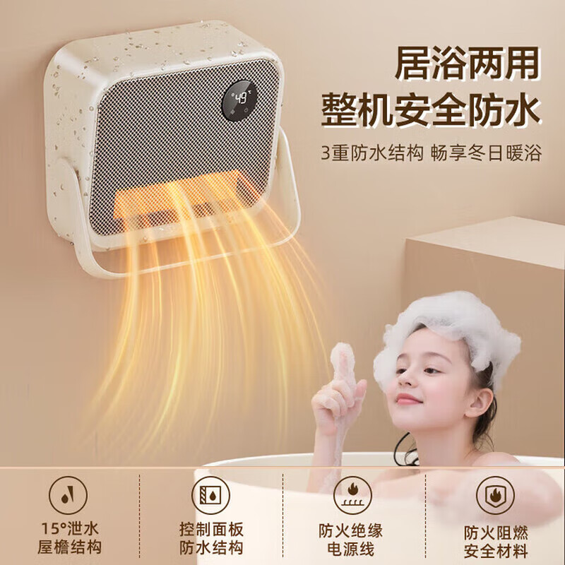 小米锅巴取暖器浴室暖风机家用电暖气卫生间浴霸壁挂冬季神多地次日达 象牙白 三挡调节+居浴两用 台+过热保护
