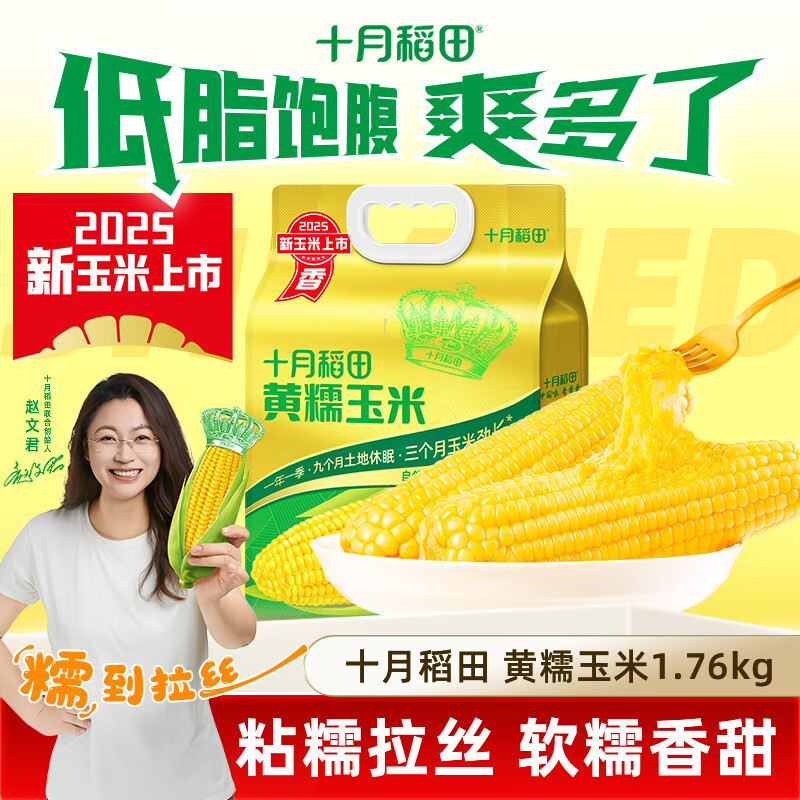 十月稻田 【2025年新玉米】黄糯玉米1.76kg/220g*8根 甜糯玉米棒 轻食