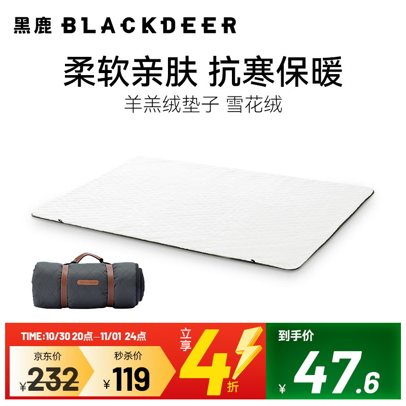 黑鹿(BLACKDEER)羊羔绒垫子毯子 户外露营加厚保暖雪花绒防潮单人双人野餐垫睡垫