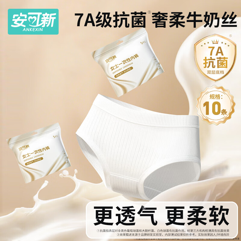 安可新牛奶丝一次性内裤女7A抗菌月子产妇旅行免洗出差日抛10条装XL码