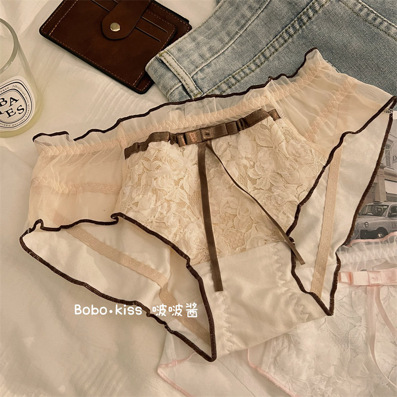 HIMICO内裤女重工刺绣性感透明蕾丝轻薄无痕透气低腰三角内裤021