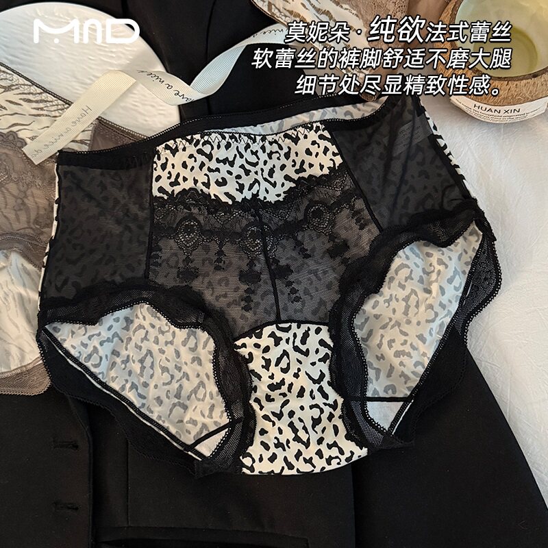 莫妮朵法式性感蕾丝内裤女纯欲风豹纹镂空包臀10A纯棉裆三角短裤