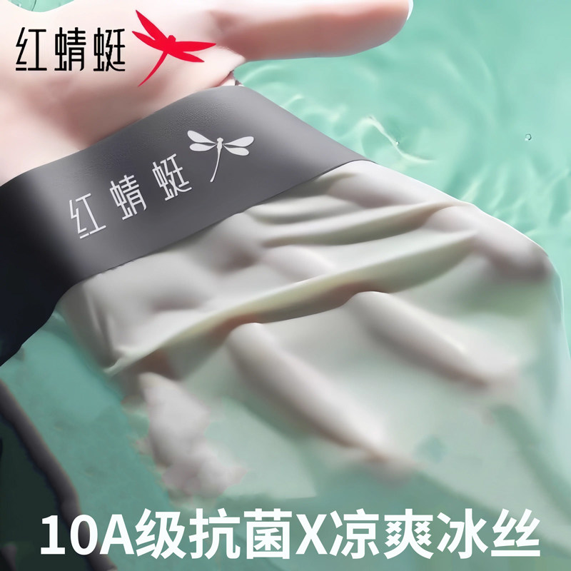 红蜻蜓冰丝内裤男款冰丝10A抗菌内裤裸感透气男士四角冰丝裤头