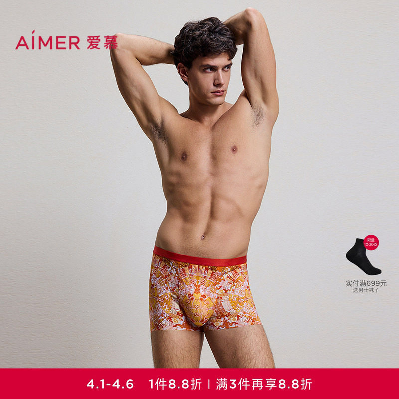 【USPACE】爱慕先生U型裤男士包腰数码印花平角内裤25春夏