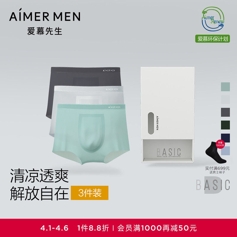 【夏日冰丝PRO3条装】爱慕先生轻薄速干春夏男士平角U型内裤