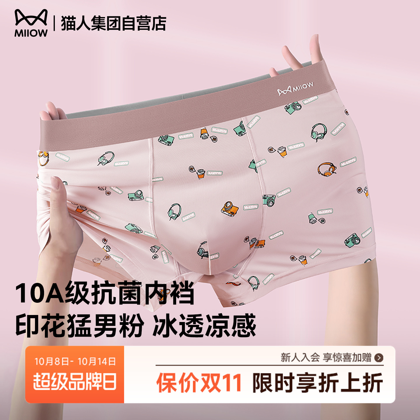 猫人男士内裤新款印花冰丝无痕2025夏季透气抗菌平角短裤男款裤衩