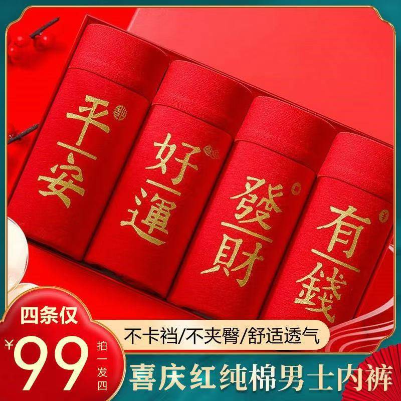 猫人内裤男本命年平角四角裤男士纯棉莫代尔棉新年大红色结婚鸿运