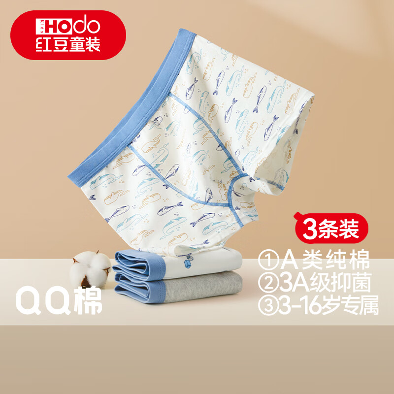 红豆儿童内裤男童棉质平角短裤A类抑菌内裤青少年四角短裤衩K4001 150