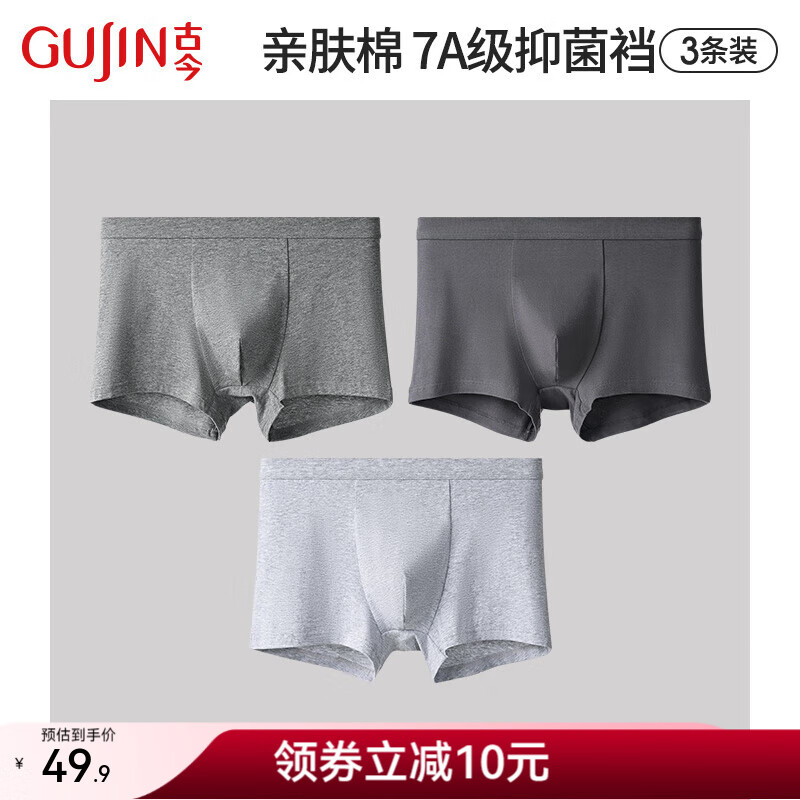 古今纯棉内裤男运动风简约宽松四角平角短裤大码裤衩 浅灰-中灰-深灰 【 3条 2XL (180)
